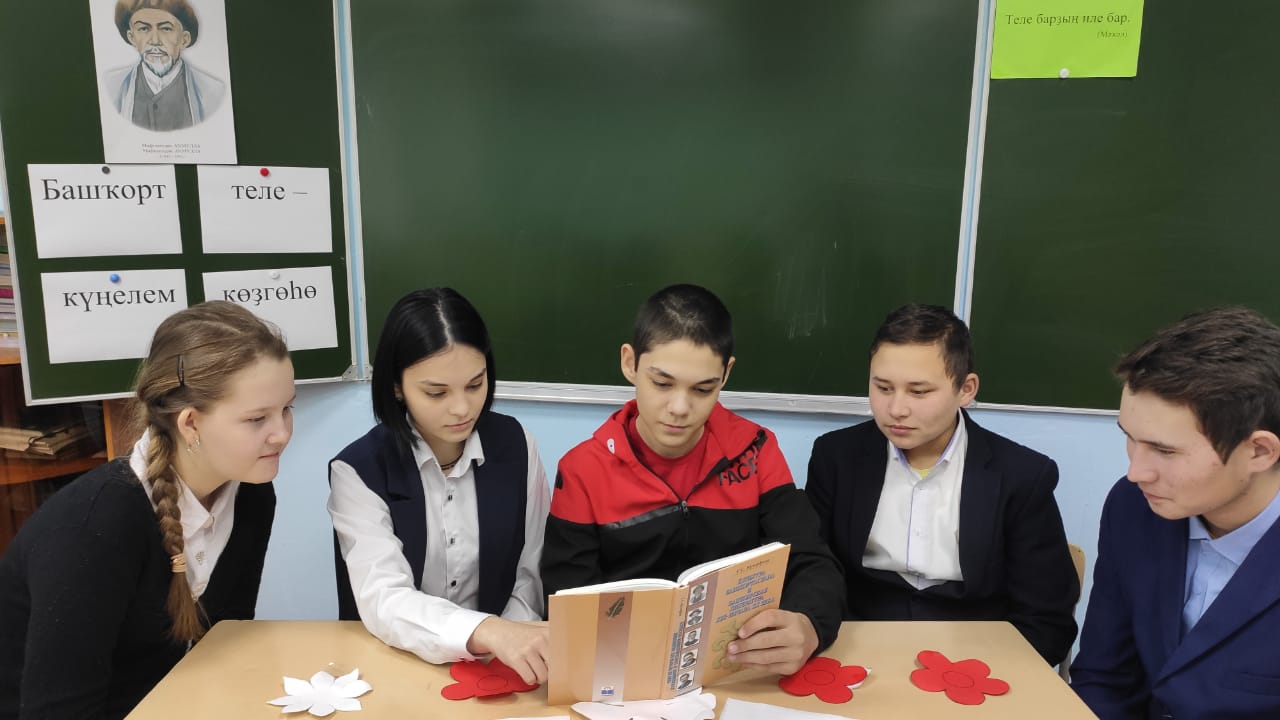 Башҡорт теле – күңелем көҙгөһө. Аҙналыҡтың икенсе көнө ошо девиз аҫтында үтте. Уҡыусылар, уҡытыусылар нимә ул “күңел”, “күңел көҙгөһө” тигән төшөнсәләргә яуап эҙләне. 8-се класс уҡыусылары ҡатнашлығында “Мин таҙа тел яҡлы!” тигән түңәрәк өҫтәл ойошторолдо. Улар М. Аҡмулланың ижады менән танышты, шиғырҙарын уҡып ишеттерҙе. Сара аҙағында бер-береһенә саф башҡорт һүҙҙәрен генә ҡулланып, изге теләктәр яҙылған сәскәләр бүләк иттеләр. М. Аҡмулла шиғырҙарын уҡыу республика марафонына ҡушылып, мәктәп коллективы шағирҙың “Нәсихәттәр” шиғырын яттан һөйләне. Бына шулай матур, мәғәнәле һәм йөкмәткеле үтте бөгөнгө көнөбөҙ. Г.М. Саҙретдинова, башҡорт теле һәм әҙәбиәте уҡытыусыһы.