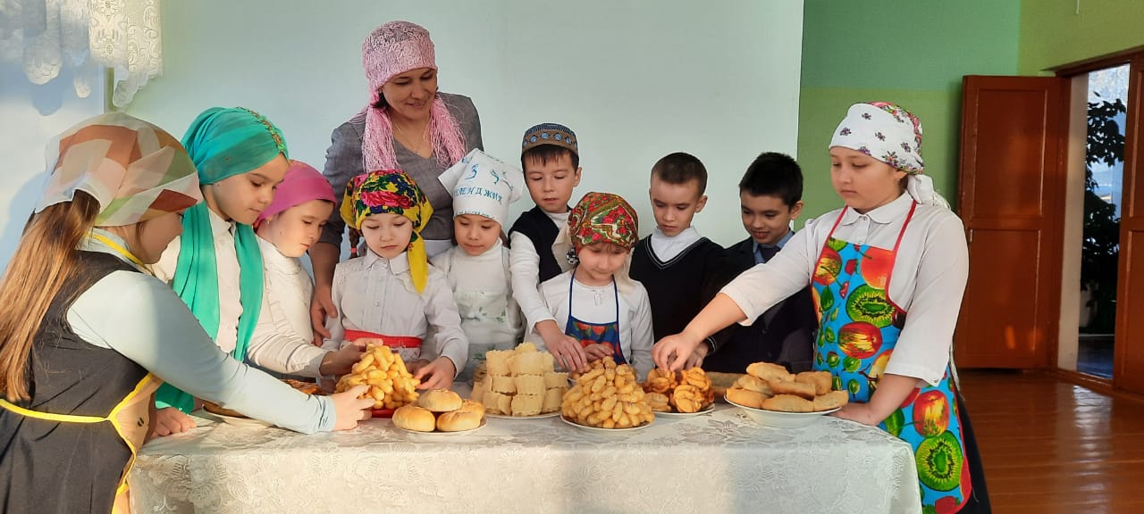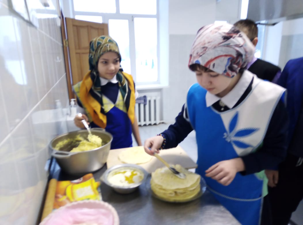 Провели мастер-класс по приготовлению одного из известных и популярных блюд — кыстыбый ("Кыстыбый"). В мероприятии участвовали обучающиеся 7-9 классов. Педагог-библиотекарь школы Гусманова Р.Р. ознакомила с технологией приготовления кыстыбый, провела мастер-класс по его приготовлению. Ученицы 7, 8 и 9 классов тоже участвовали в этом, испекли кыстыбый и угостили ими одноклассников.