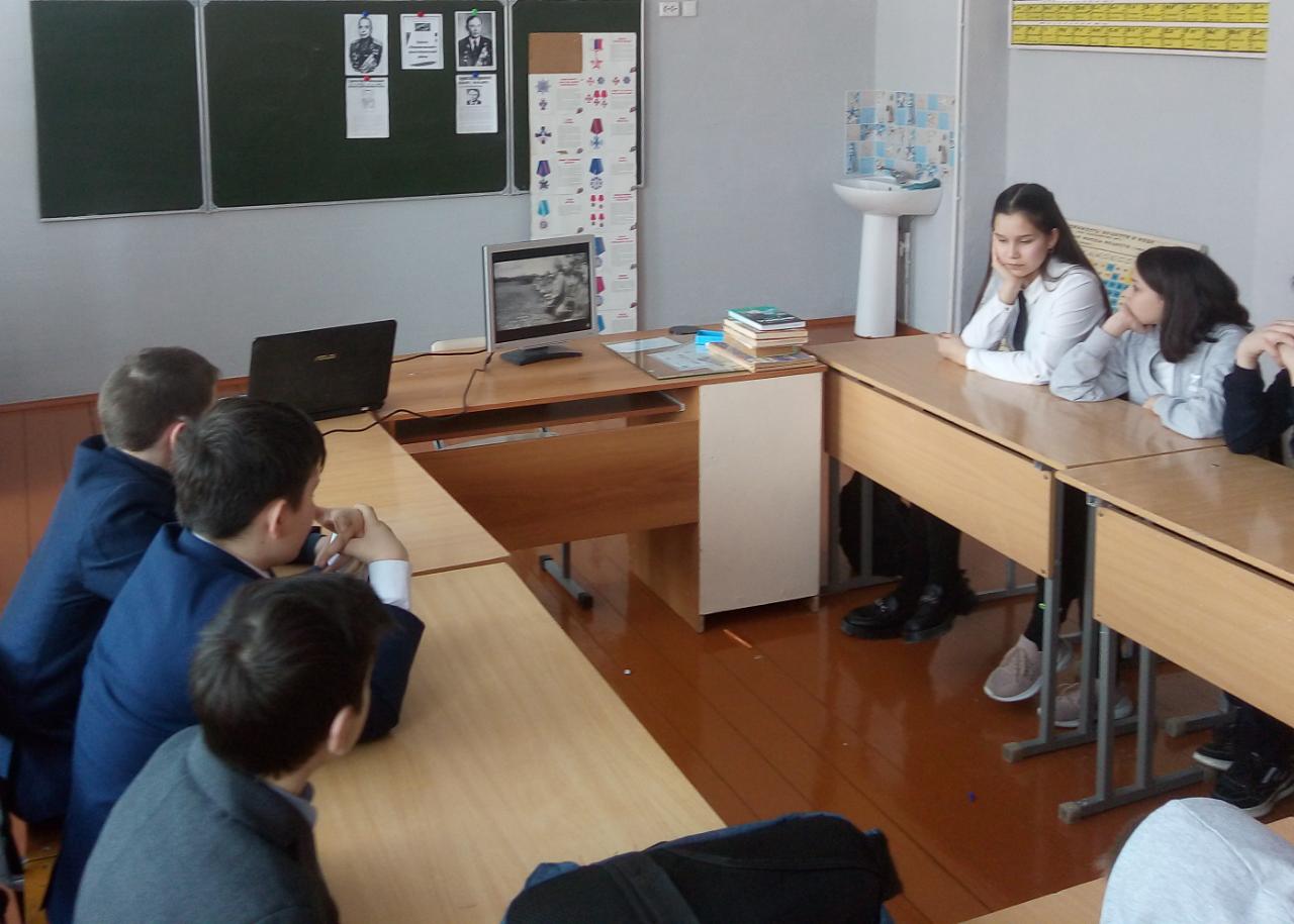 Учащиеся 7-8 классов посмотрели фильм про Дважды Героя Советского Союза, нашего земляка М.Г. Гареева. Также составили карту боевых действий М. Гареева.