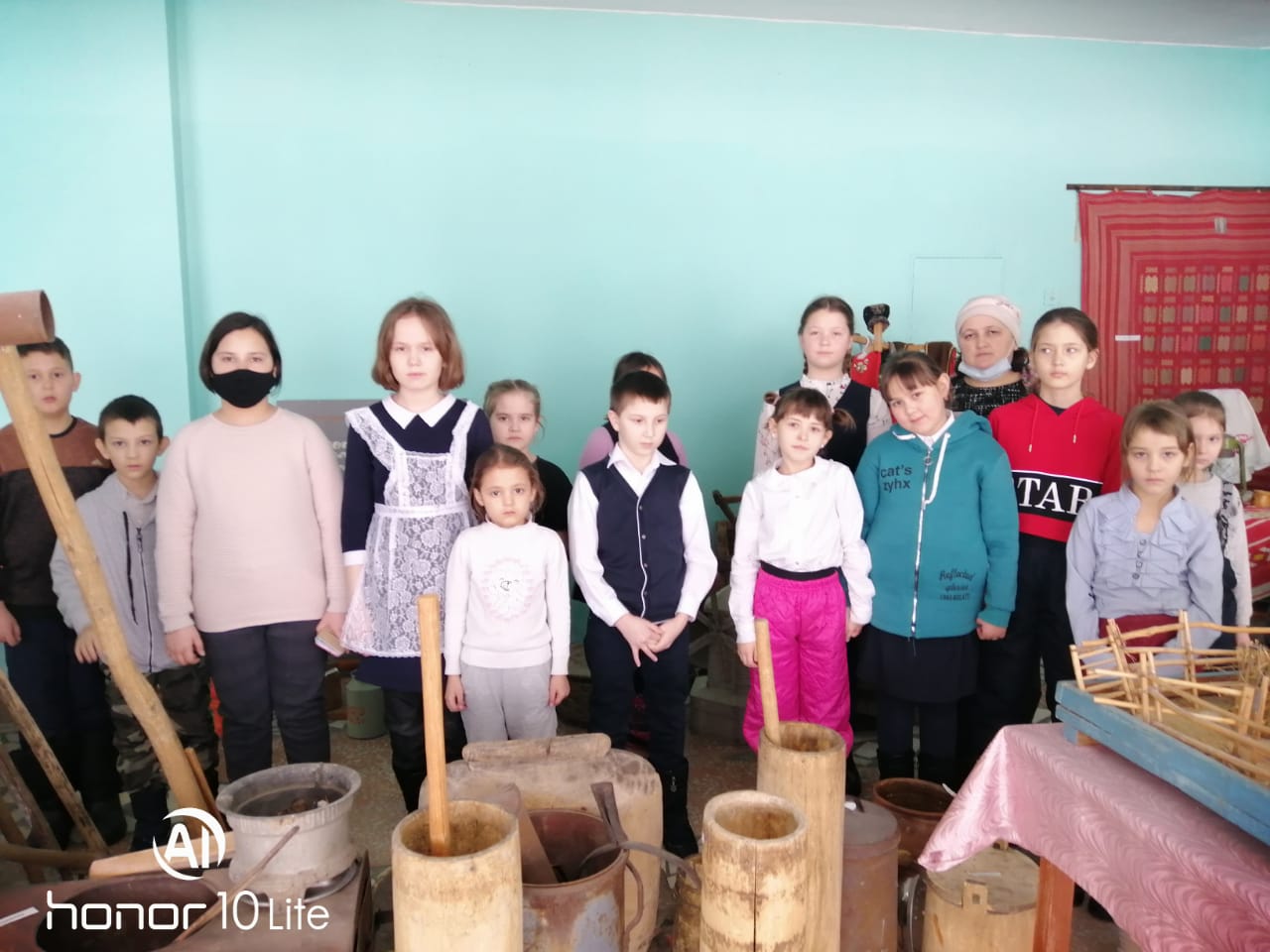 Учащиеся начальных классов и 9 класса посетили краеведческий музей села, с интересом рассмотрел экспонаты.