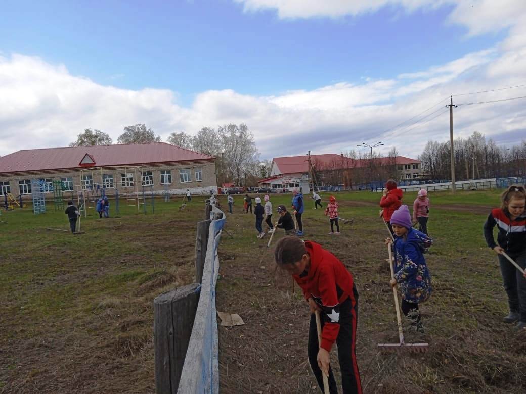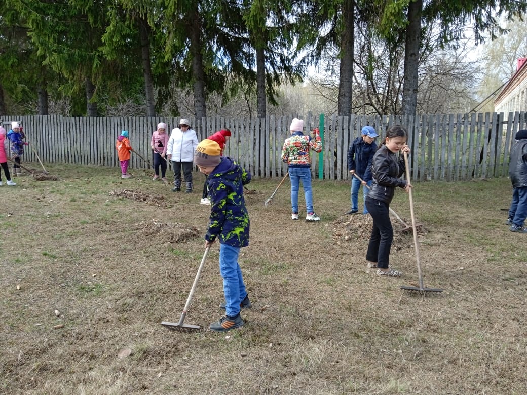 Денёк выдался ясным, солнечным, что способствовало отличному настроению. Вооружившись необходимым инвентарем, ребята и педагоги с удовольствием приводили в порядок территорию. Все трудились с большим душевным подъемом