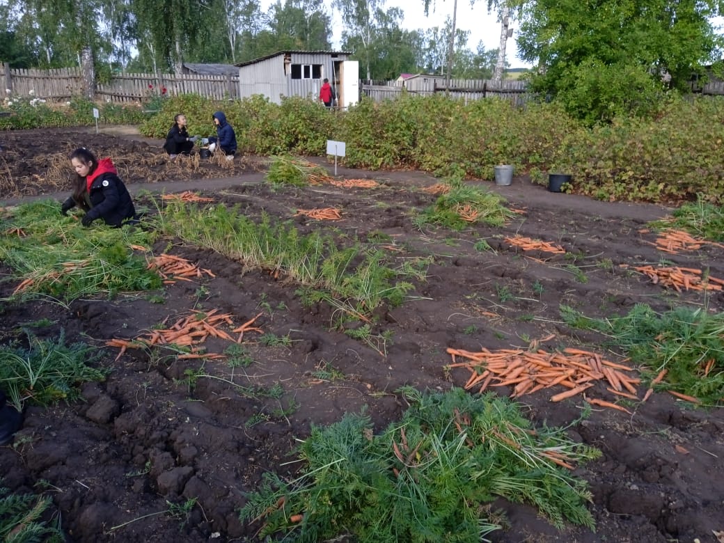 Осень — время сбора урожая. Сельскохозяйственная продукция, выращенная на школьном приусадебном участке используется для организации питания учащихся в школьной столовой.
