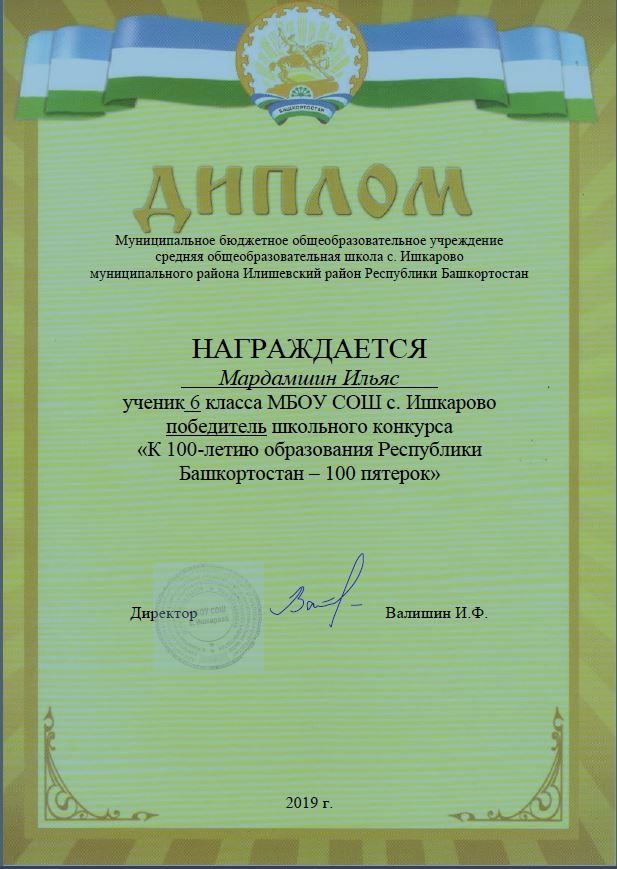 В феврале месяце в школе был объявлен конкурс "К 100-летию образования Республики Башкортостан — 100 пятерок". Согласно положению конкурса определены победитель и призеры конкурса.
