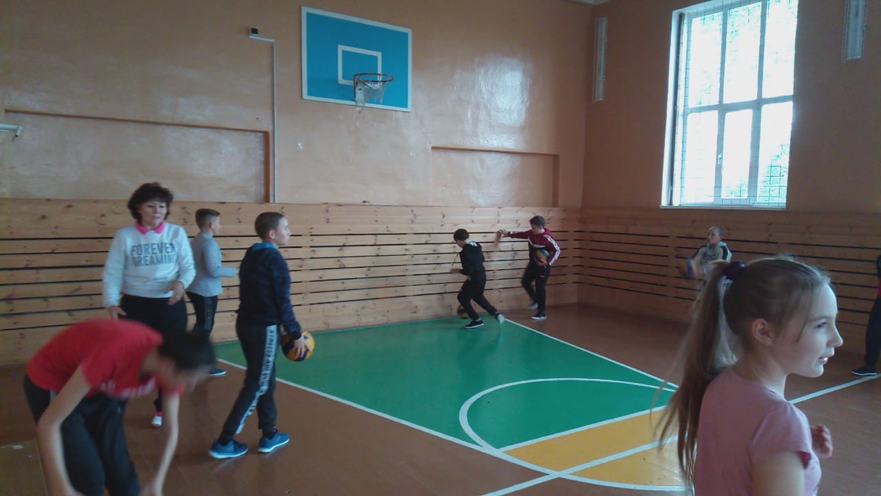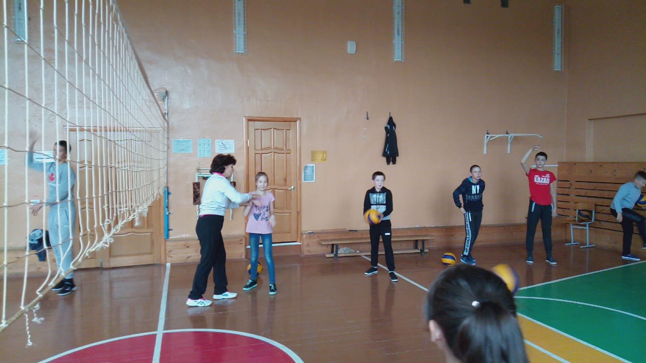 Учитель физкультуры собрал детей для проведения занятия с учащимися с 4 по 11 класс. Занятие проведено тренером по волейболу Рамзией Вагизовной Шайхлисламовой.