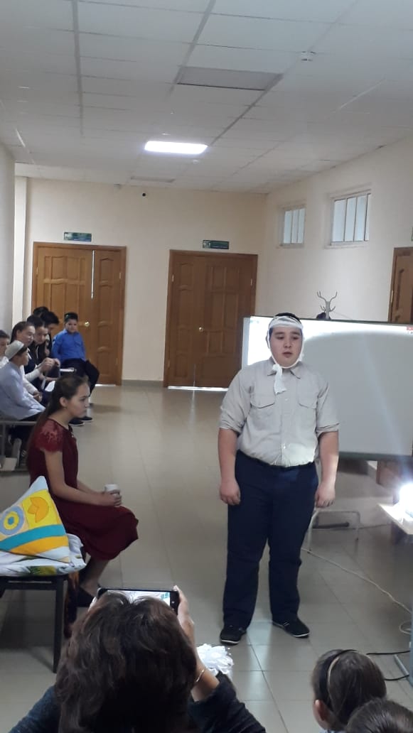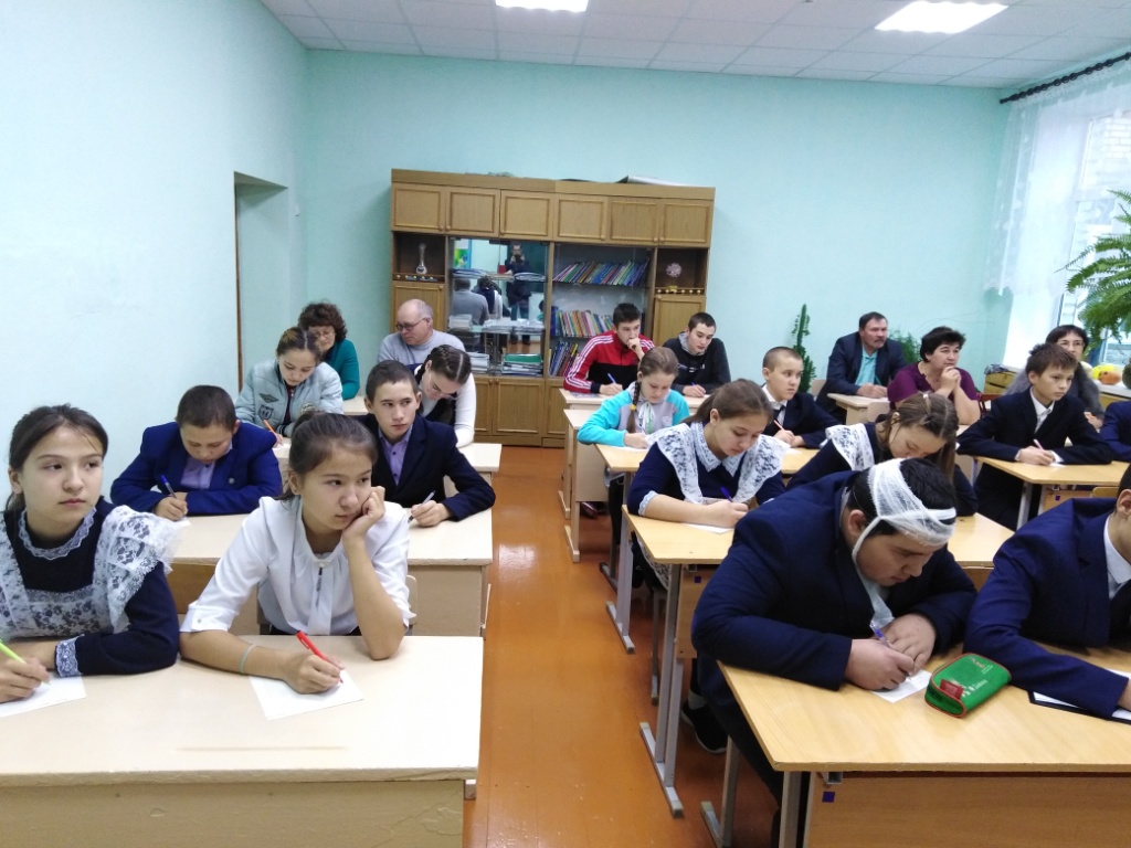 Утро 19 октября, суббота. Радостные, нарядные, с огоньками любопытства в глазах, учащиеся спешат в школу. Сегодня все будут писать диктант, приуроченный к этой знаменательной дате. Справились. А что будет дальше? Чем удивят эти мальчишки в тюбетейках, Лена апай в выходном платье, девочки в национальных костюмах, десятиклассник Ильшат с перебинтованной головой, старшеклассники в строгой школьной форме? А Гузел Мунавировна, все такая же доброжелательная и открытая, и Рамзиля Рафитовна, спокойная, аккуратная, в переднике? Наконец-то началось… Началось… и пролетело на одном дыхании. Исполнение песен, выразительное чтение стихотворений поэта перемежались с инсценированием эпизодов из произведений, демонстрацией видеофильма. Бурными аплодисментами встретили зрители выступления 5-классников, Гилязевой А., Гибадуллина И., Газетдинова И., Ризвановой И., Гатауллина Д., Хаертдиновых Ильнура и Айнура, первоклассницы Ганиевой Г. Ни в чем не уступали настоящим актерам наши Гузел Мунавировна и Рамзиля Рафитовна. Вели утренник Садертдинова Л. и Минниахметов Р.
