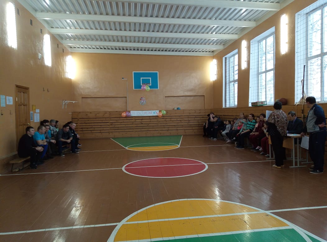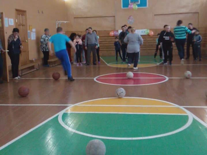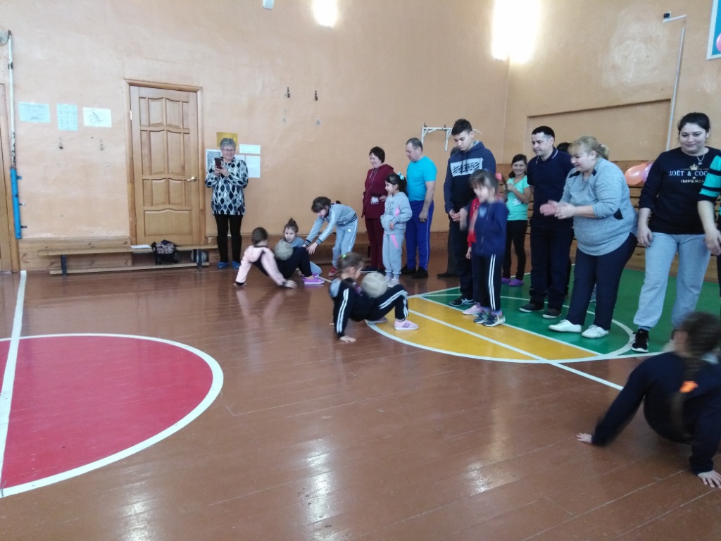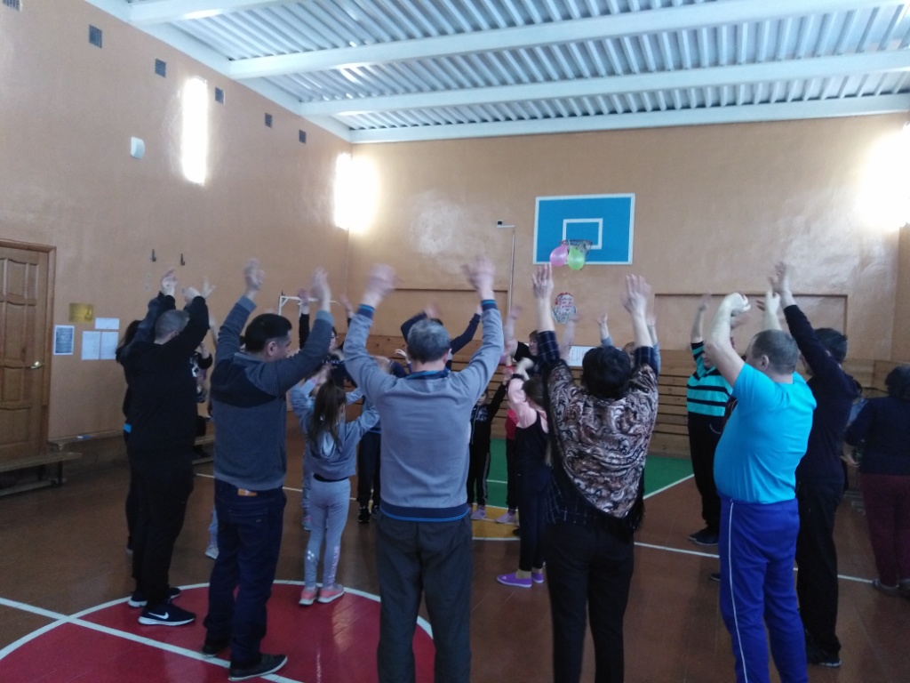 Все участники собрались в спортзале и праздник начался с разминки, где семьи зажгли символичный семейный очаг, поприветствовали друг друга. После этого начались спортивные соревнования. Под руководством учителя физкультуры Яхина В.Т. все участники бегали, прыгали, метали мячи, проходили через препятствия.