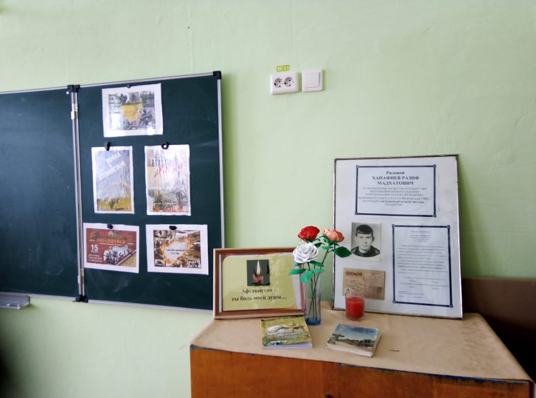 Время неумолимо отсчитывает свои бег: 5, 10,15, 30…Тридцать один год минуло с той поры, как завершилась война в Афганистане. Восемнадцатилетние парни, одев панамы с красной звездочкой, не ведали, в какую политическую кровавую игру их втянули. Не знали, что некоторые уже никогда не вернуться домой с перевалов черных гор Афганистана, сложат свои юные головы на чужбине. Не обошла стороной и нас эта война. Наши земляки участвовали в этой войне. А один из них, Ханафиев Разиф, погиб в Афганистане при выполнении боевого задания. Посмертно он награжден орденом Красной Звезды.