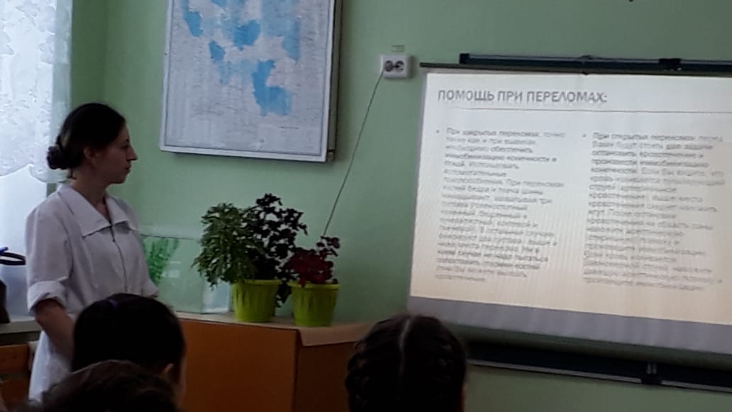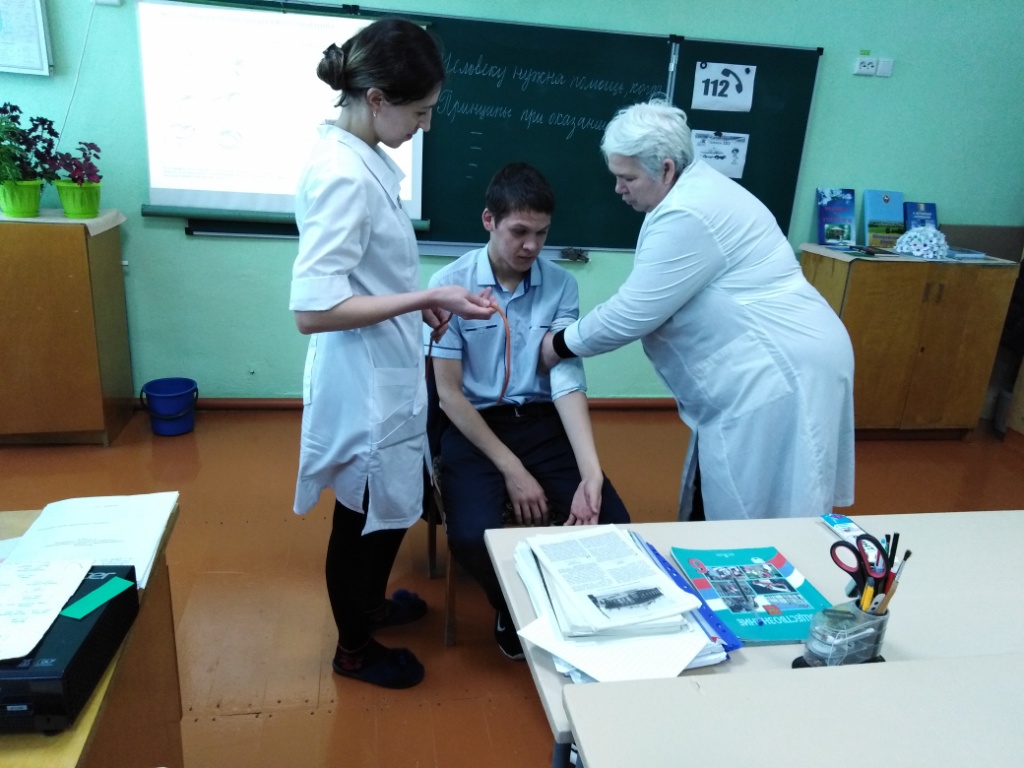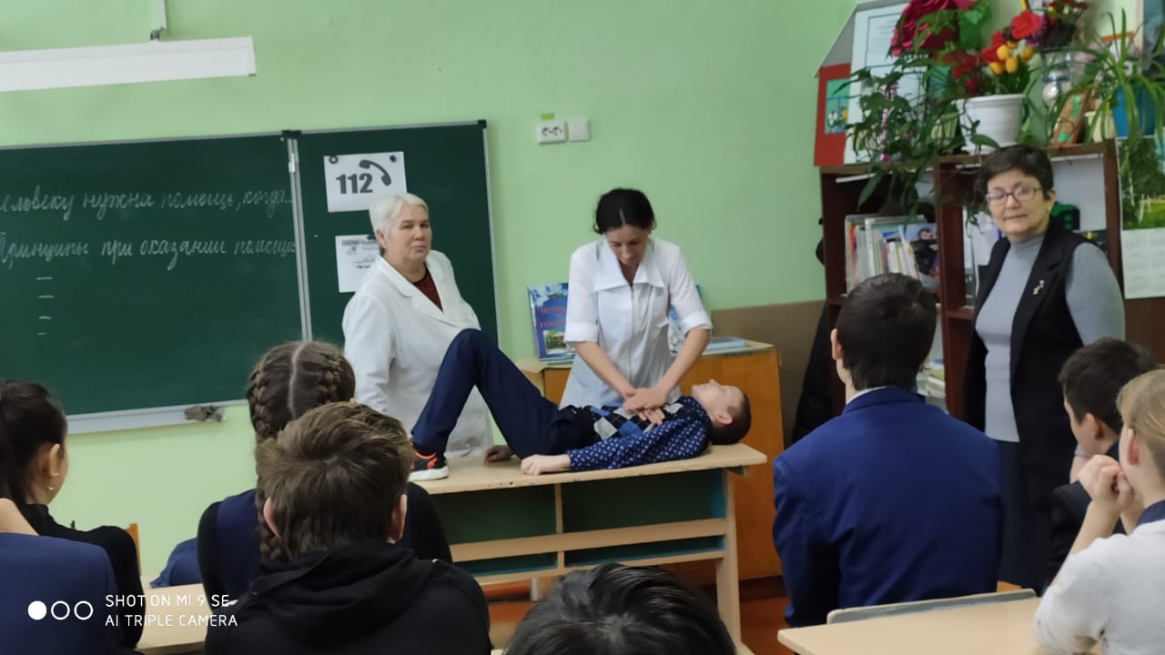 Фельдшер врачебной амбулатории Гимазетдинова А. и Муллаянова Г., преподаватель-организатор ОБЖ Яхин В.Т., также классные руководители Нигматдинова Г.Я., Газетдинова Г.А., Мардамшина Э.Р., Гильмутдинова З.Г. провели занятие «Оказание первой медицинской помощи при различных видах повреждений» для учащихся 1-11 классов.