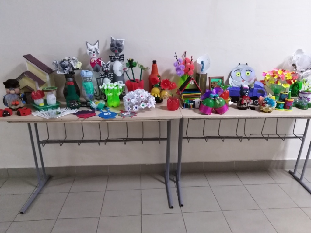 Идея превращать пластиковый и другой мусор в нужные вещи и интересные композиции, конечно, не нова. Наши ученики тоже активно включились в это дело.