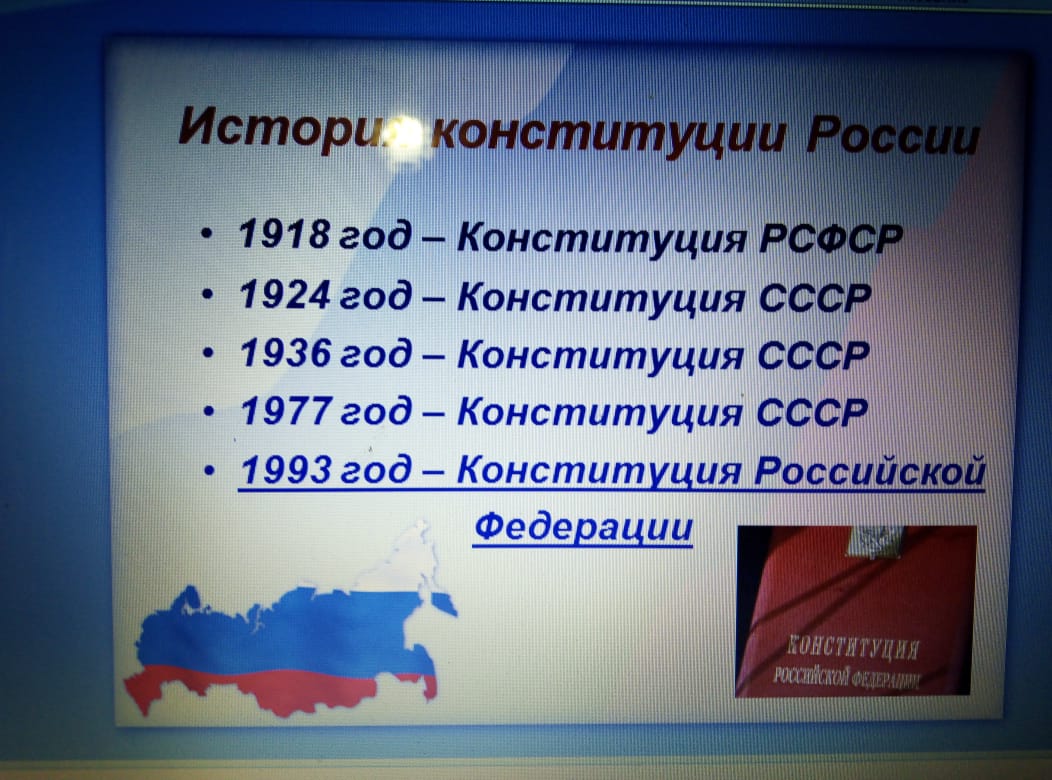Также классные руководители и учителя провели классные часы и беседы об истории Конституции, о правах и обязанностях, об основах конституционного строя. Школьники познакомились с символами государства, их историей. Учащиеся младших классов участвовали в конкурсе рисунков «Закон великой страны». Для старшеклассников была проведена викторина на тему «Знаешь ли ты свои права