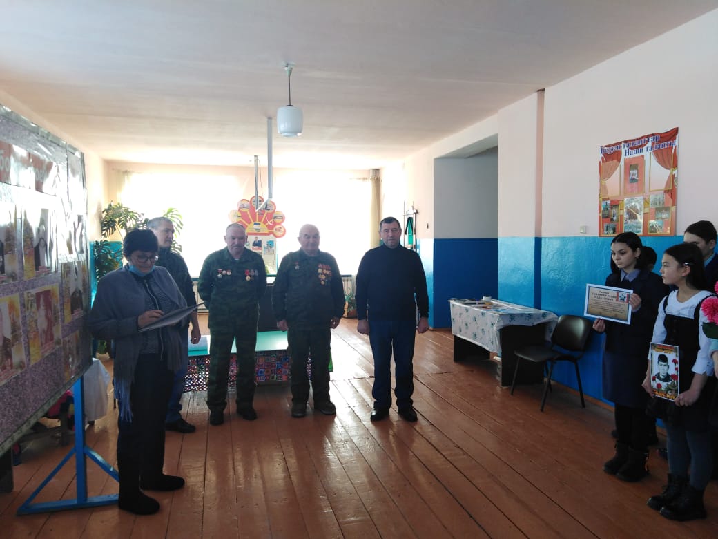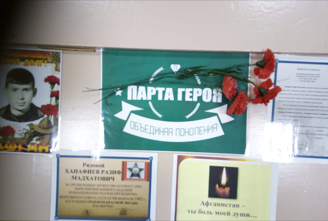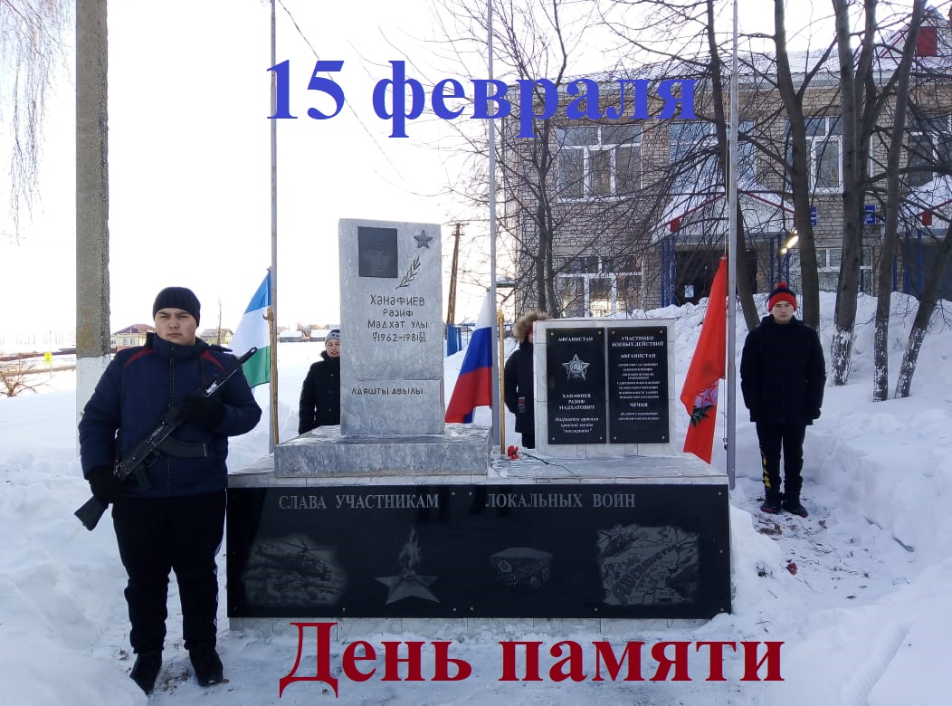 Сегодня, в день вывода советских войск из Афганистана, в школе прошли классные часы. Так же группа обучающихся участвовали в митинге возле памятного обелиска, посвященного героям-афганцам. Прозвучали стихи об этой войне, о солдатах, участниках войны. Сами ветераны афганской войны поделились воспоминаниями. Минутой молчания почтили память погибших. Учащиеся вместе с ветеранами афганской войны возложили венки и цветы к обелиску. Мероприятие организовали учитель истории Гильмутдинова З.Г. и преподаватель ОБЖ Яхин В.Т.