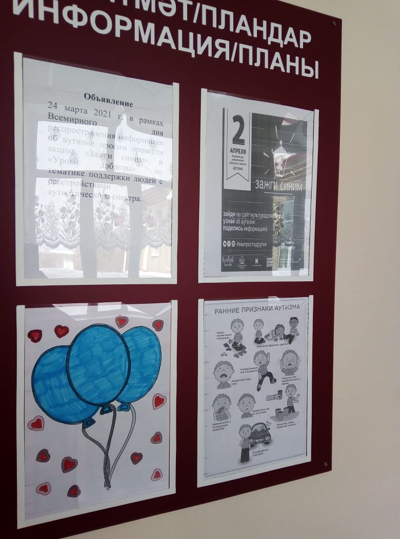 Информация о Всемироной акции "Зажги синим" была размещена на информационном стенде.