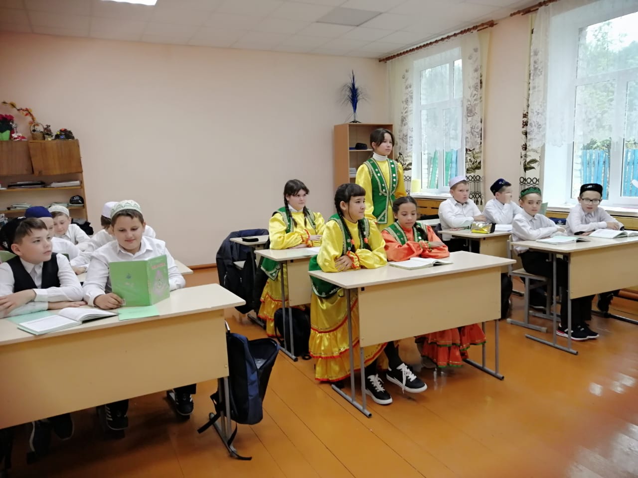 Сегодня, 16 апреля 2021 года, в рамках национального проекта «Культура» в школе отметили День национального костюма народов республики. В этот день в школе провели акцию «Я учусь в национальном костюме». Занятия проходили в формате уроков, классных часов, организовали выставку из башкирских национальных костюмов.