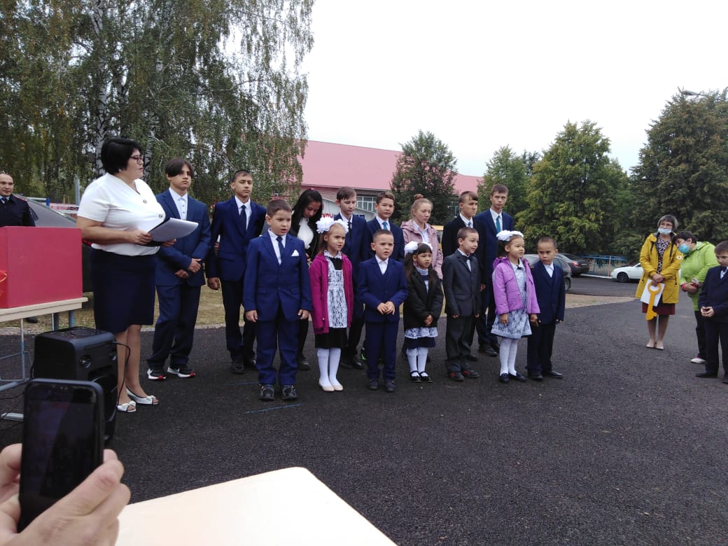 Ученики первого и 9 класса выступили с литературной композицией, первоклассникам вручили символический ключ знаний. Затем прозвенел 1 звонок и они вместе со своим классным руководителем прошли в свой класс.