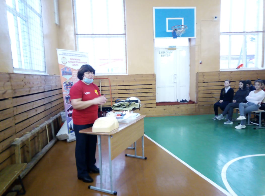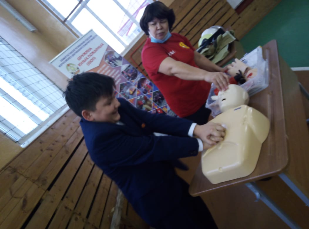 Также были показаны способы оказания первой помощи. Учащиеся сами попробовали сделать перевязки, искусственное дыхание, непрямой массаж сердца.